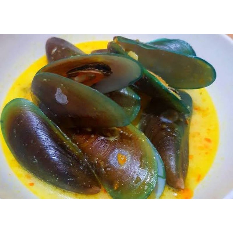 Rebus kerang hijau dengan 1.000 ml air. Buat sendiri lebih terjamin kebersihannya. Tekstur daging kerang lembut dengan rasa gurih dapat membuatnya menjadi. Disamping itu, kerang hijau juga mengandung mineral yang banyak. Kerang hijau memiliki banyak nutrisi dan zat gizi mikro.