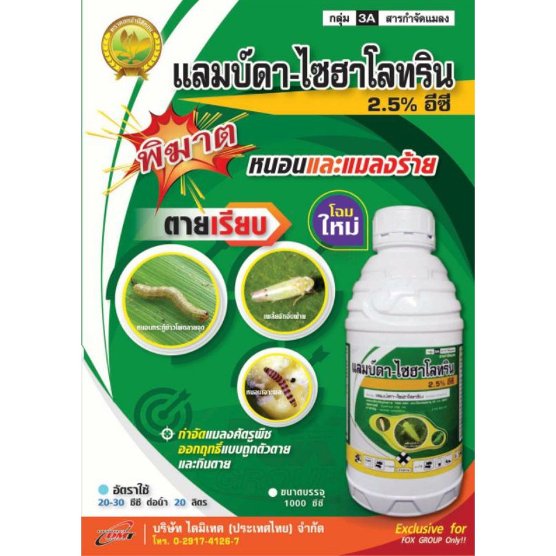 แลมบ์ดา ไซฮาโลทริน(lambda cyhalothrin) 25% w/v ec กลุ่มสารเคมี : แลมด้า. โซตัส (138) โซโล (1) ไดนามิคพันธุ์พืช (285).